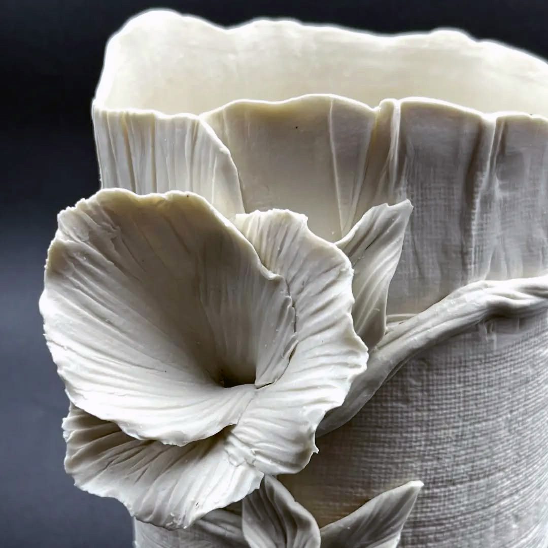 L’œuvre de Florence Truchon est une ode à la nature. Elle puise son inspiration dans le monde végétal pour créer des pièces uniques en biscuit de porcelaine. Ses créations saisissent la fragilité et la beauté des fleurs et des éléments naturels, transformant la porcelaine en un jardin botanique imaginaire.