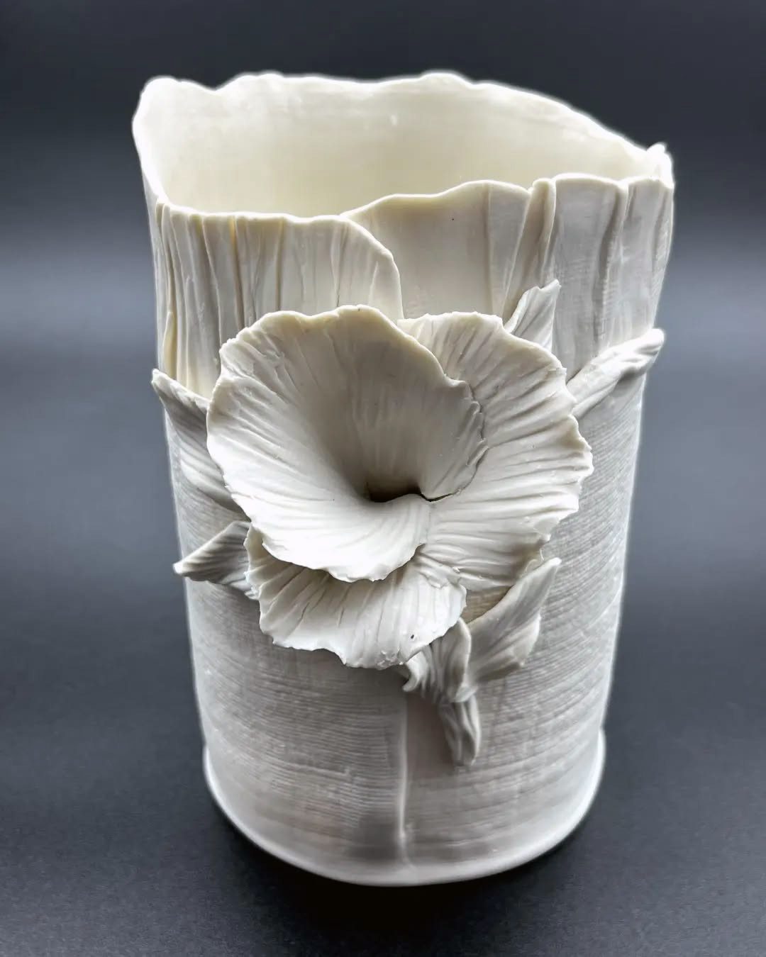 Ce parcours unique confère à son travail une finesse et une élégance rares. Chaque pièce, qu’il s’agisse de vases, de plats ou de fleurs d’une délicatesse inouïe, est le fruit d’une recherche constante d’émotion et de poésie.