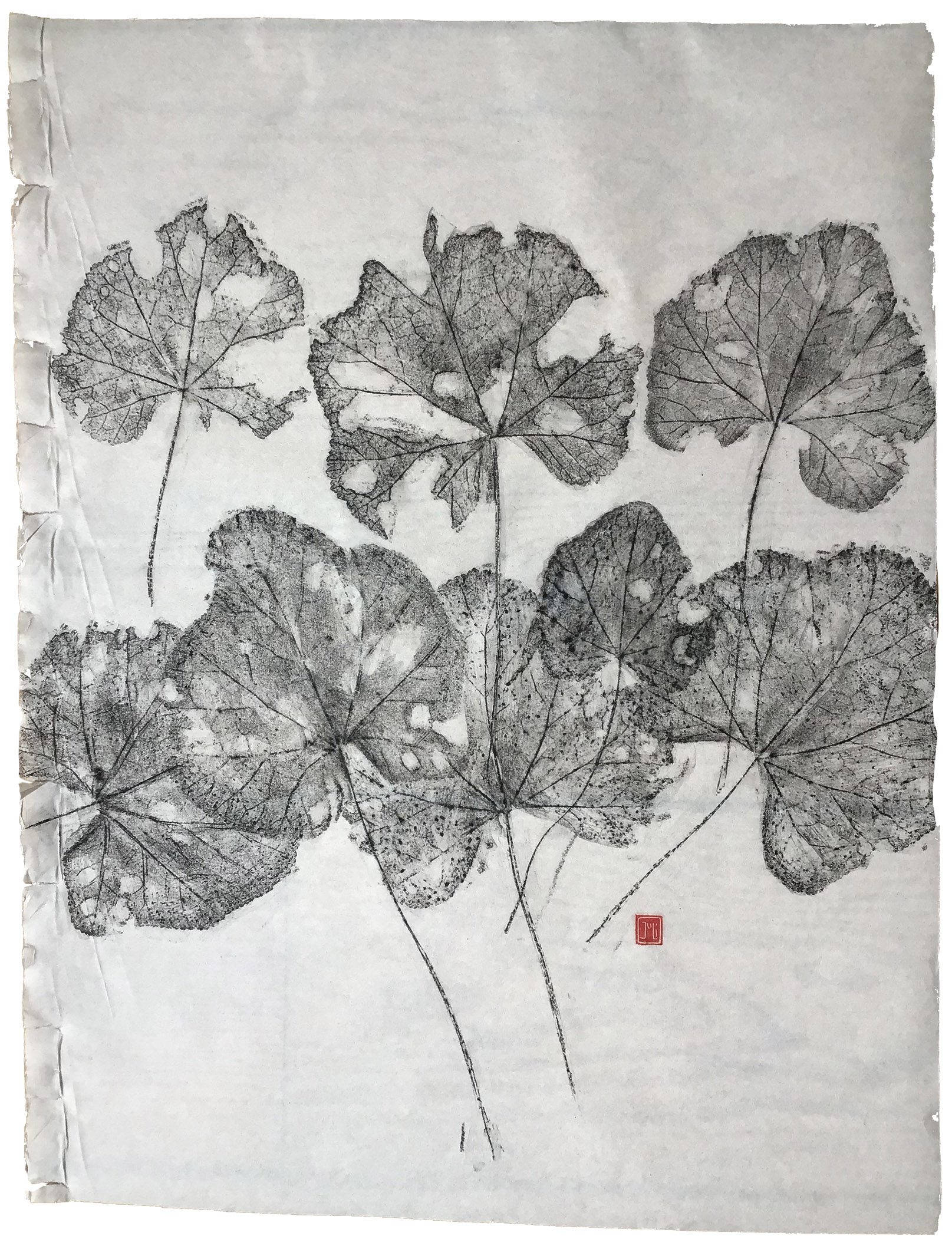 Il est le compagnon privilégié de mon cheminement artistique. Avec lui, j’expérimente, je prends différentes directions… Moulage, gaufrage, estampage, empreinte ou simple feuille recevant un dessin ou une peinture.